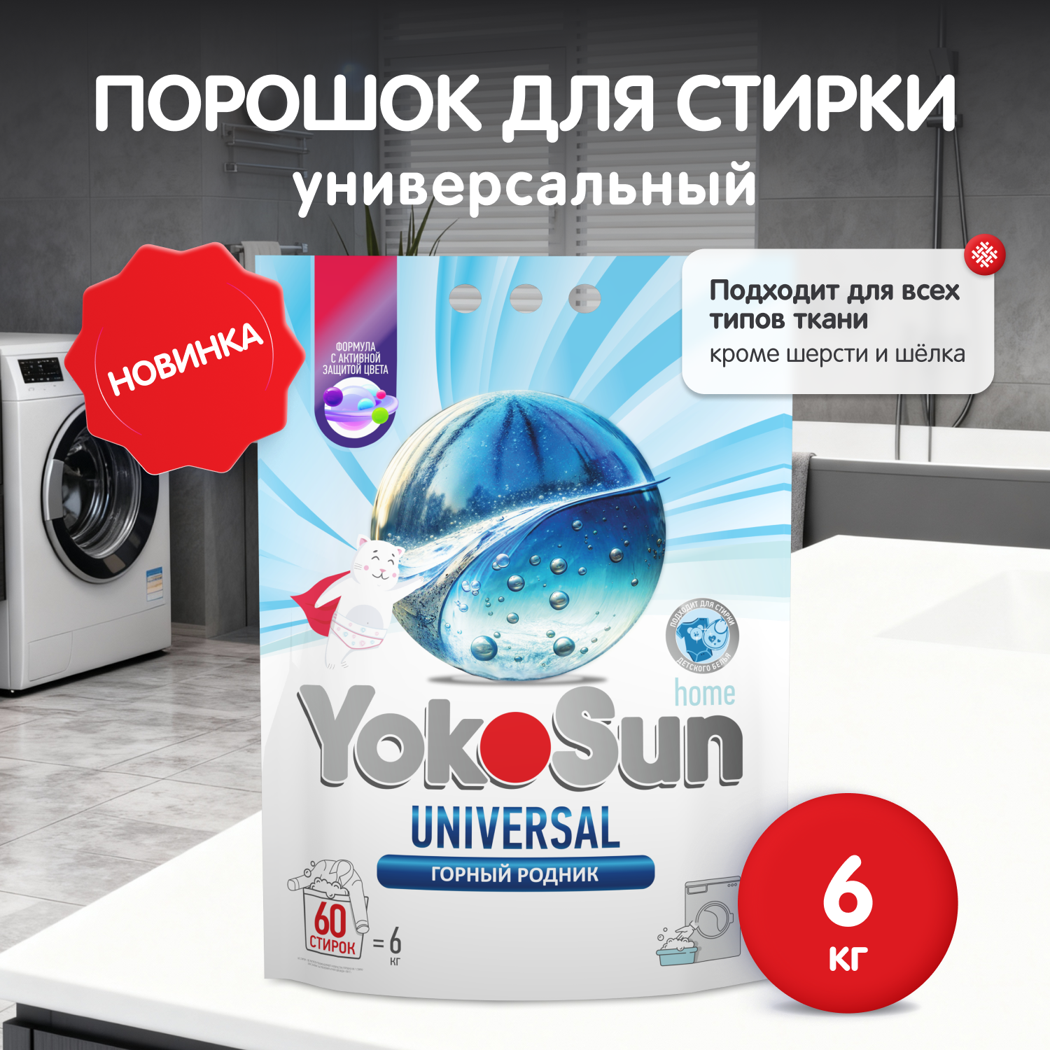 A versatile, highly effective laundry detergent for the whole family. This color-restoring powder rinses easily with water. It is designed for washing colored and white items made from natural, synthetic, and blended fabrics (except wool and silk). Its hypoallergenic formula makes it suitable for washing children's items. This detergent is suitable for both hand washing and all types of washing machines at all temperatures.